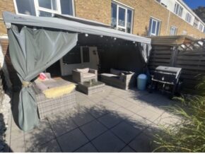 - Dit huis heeft 4 slaapkamers, een badkamer, 2 toiletten, een garage en een privétuin